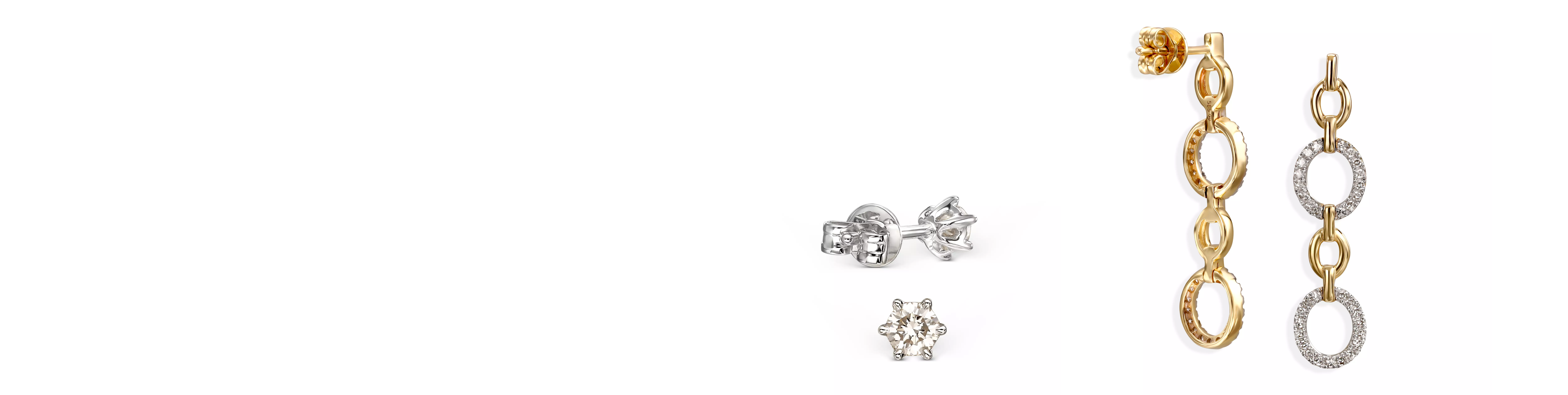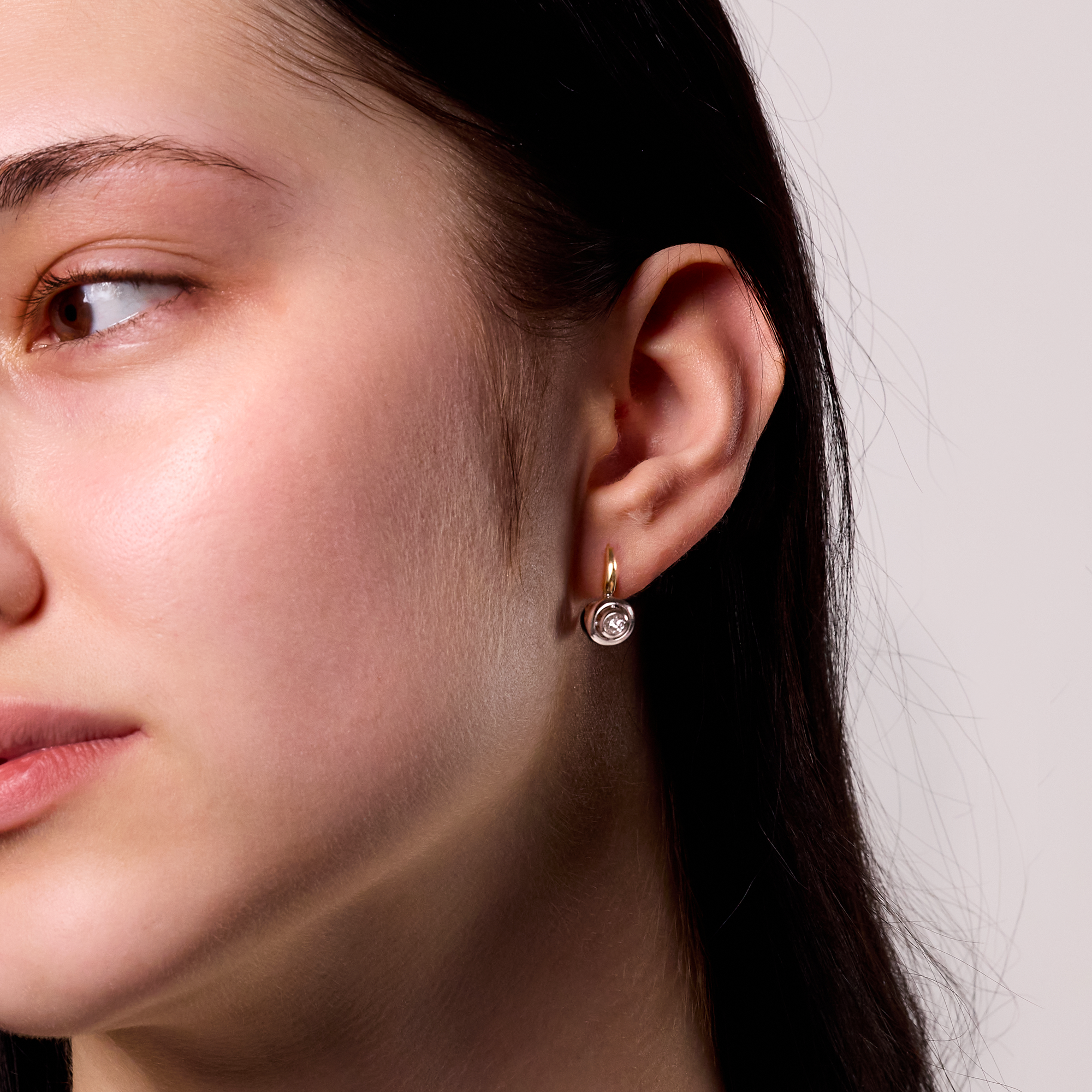 Kolczyki złote z diamentami naturalnymi o łącznej masie 0,86 ct na angielskim zapięciu, próba 585