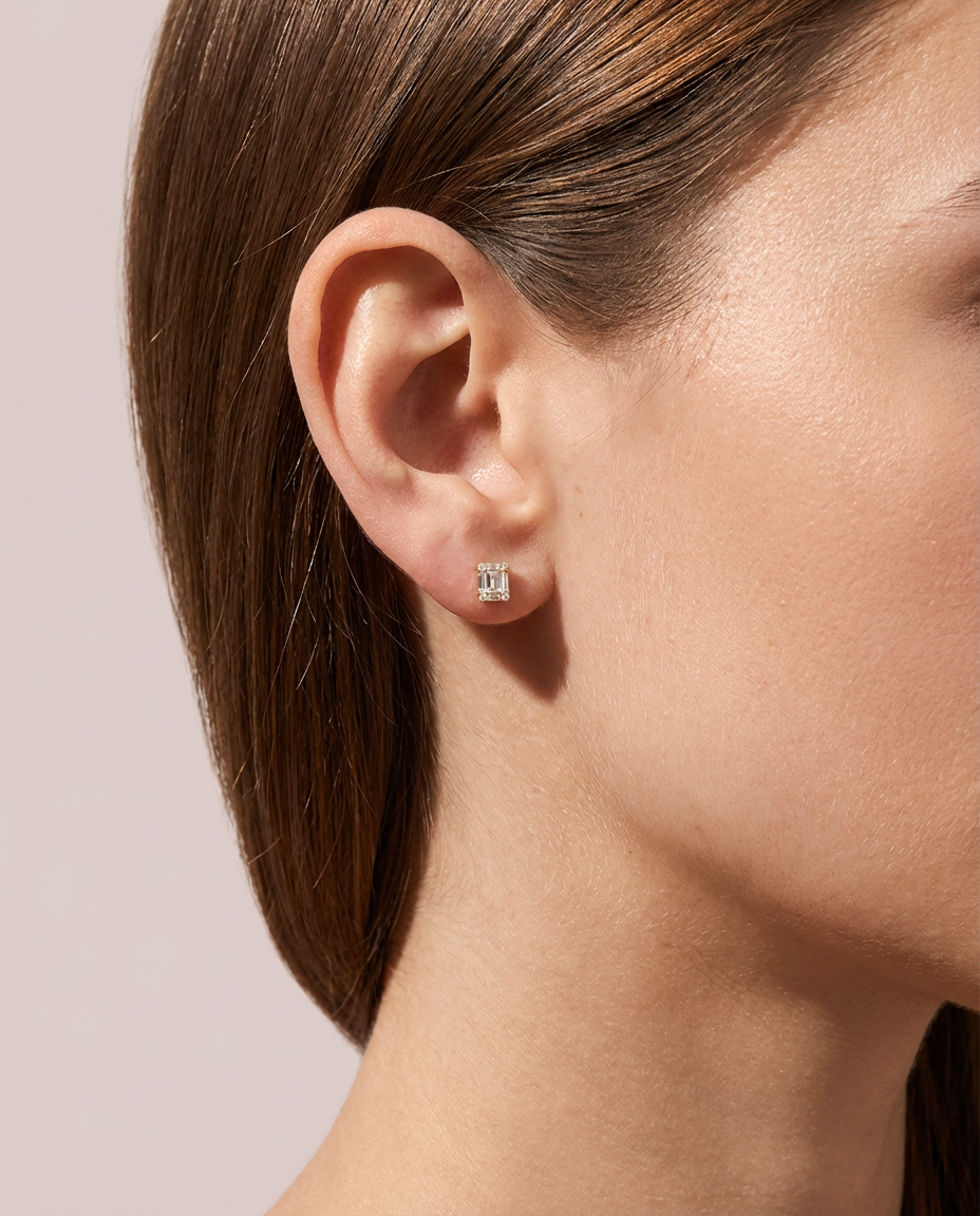 Kolczyki złote prostokątne z diamentami bagietowymi, próba 585