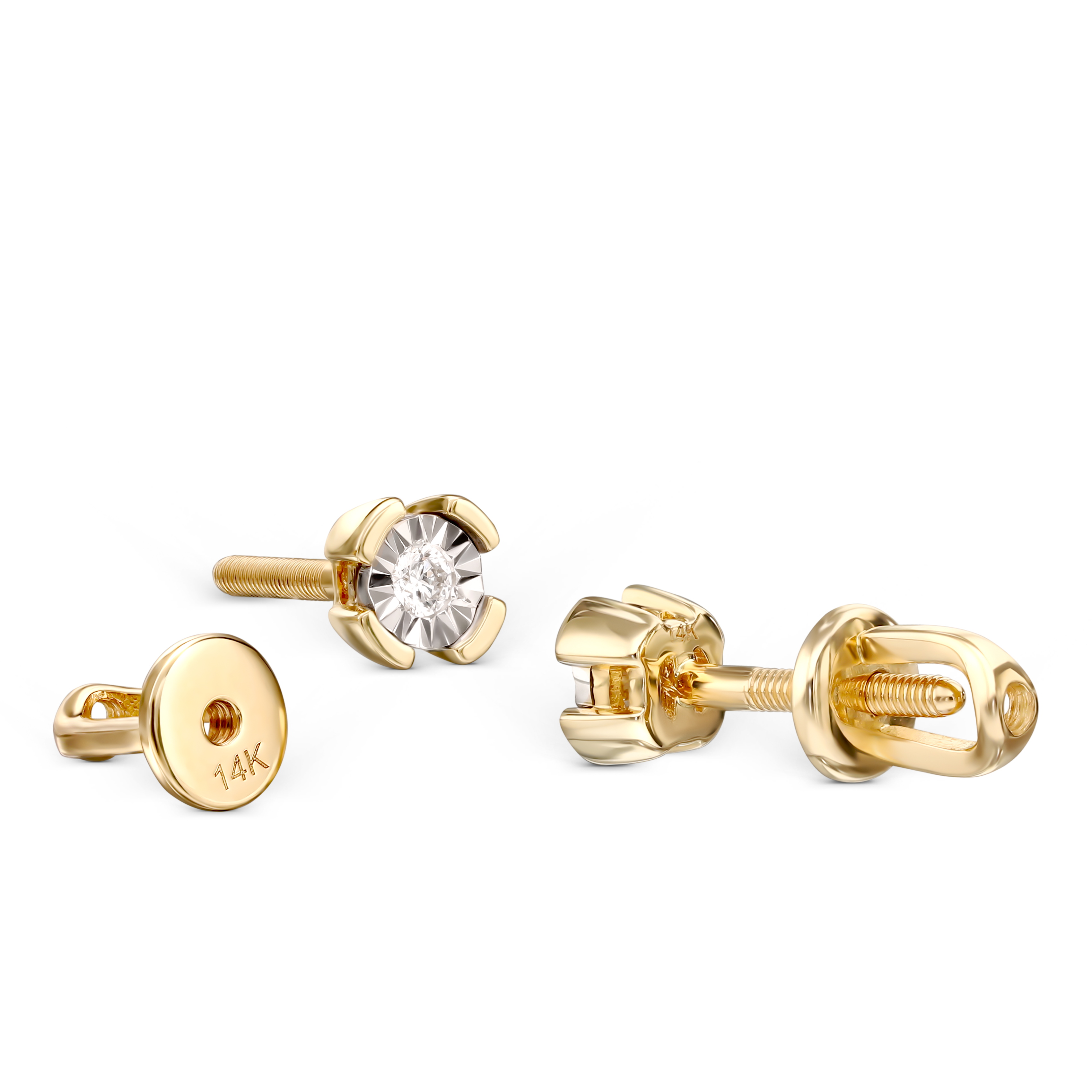 Kolczyki złote z diamentami naturalnymi 0.2 ct, zapięcie na sztyft, próba 585