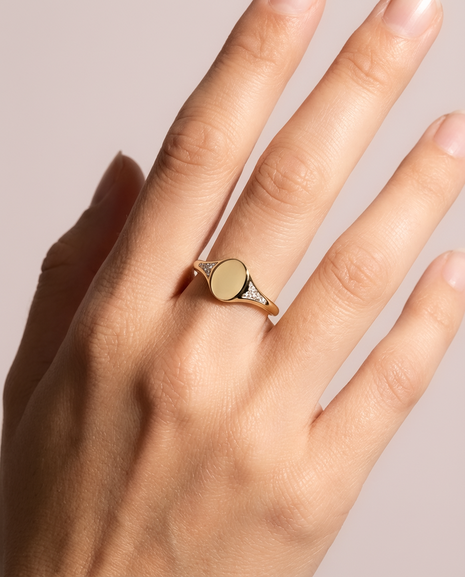 Sygnet złoty z gładką powierzchnią i owalną koroną, próba 585