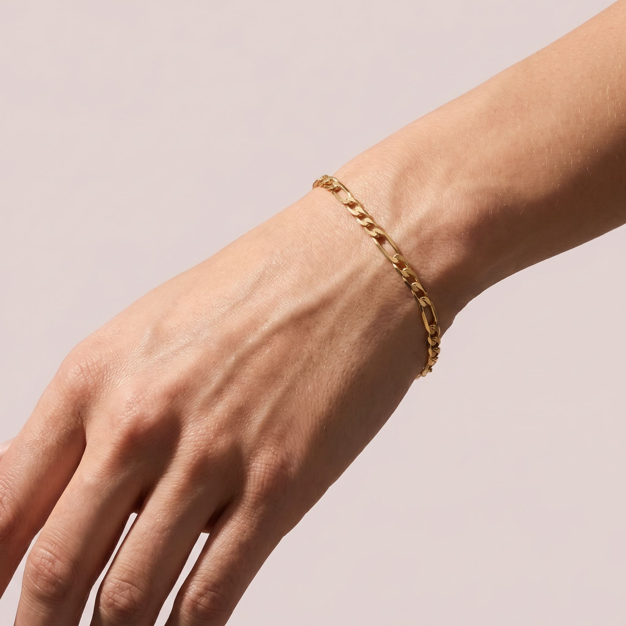 Bransoleta złota wykonana z najwyższej jakości złota próby 585 w splocie figaro szerokości 4 mm. Bransoletka posiada zapięcie typu federing co pozwala na bezpieczne i wygodne użytkowanie. 953Z40.18