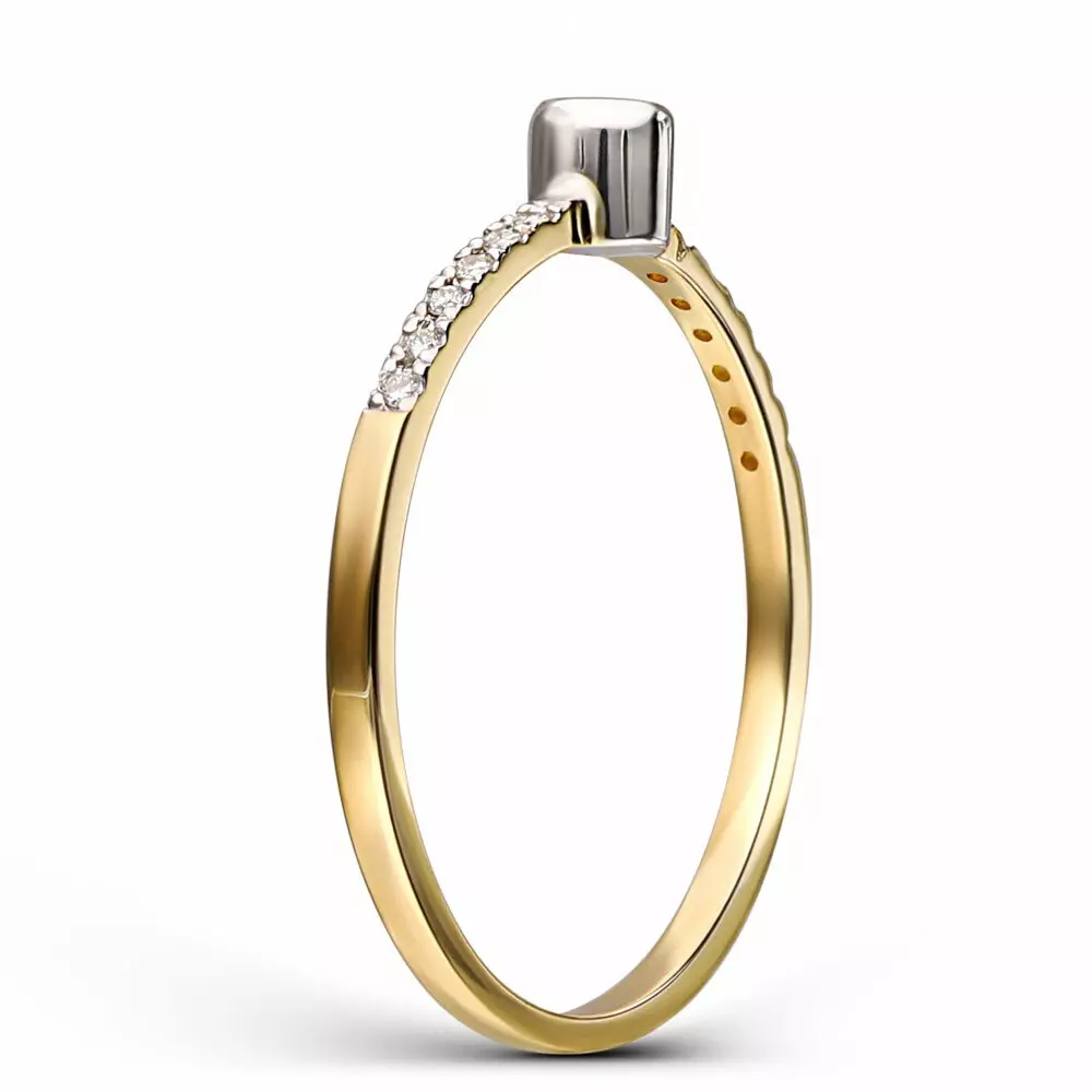 Delikatny pierścionek złoty, ozdobiony szafirem w koronie z białego złota, obrączka wysadzana 12 diamentami naturalnymi o łącznej masie 0.036 ct. Idealny jako prezent na rocznicę lub prezent dla dziewczynki z okazji I Komunii Św. Do każdego produktu z kamieniami naturalnymi dajemy certyfikat potwierdzający próbę złota, autentyczność diamentów oraz pozostałych kamieni szlachetnych, a także ich ilość i parametry. 1DZ.SF/15+