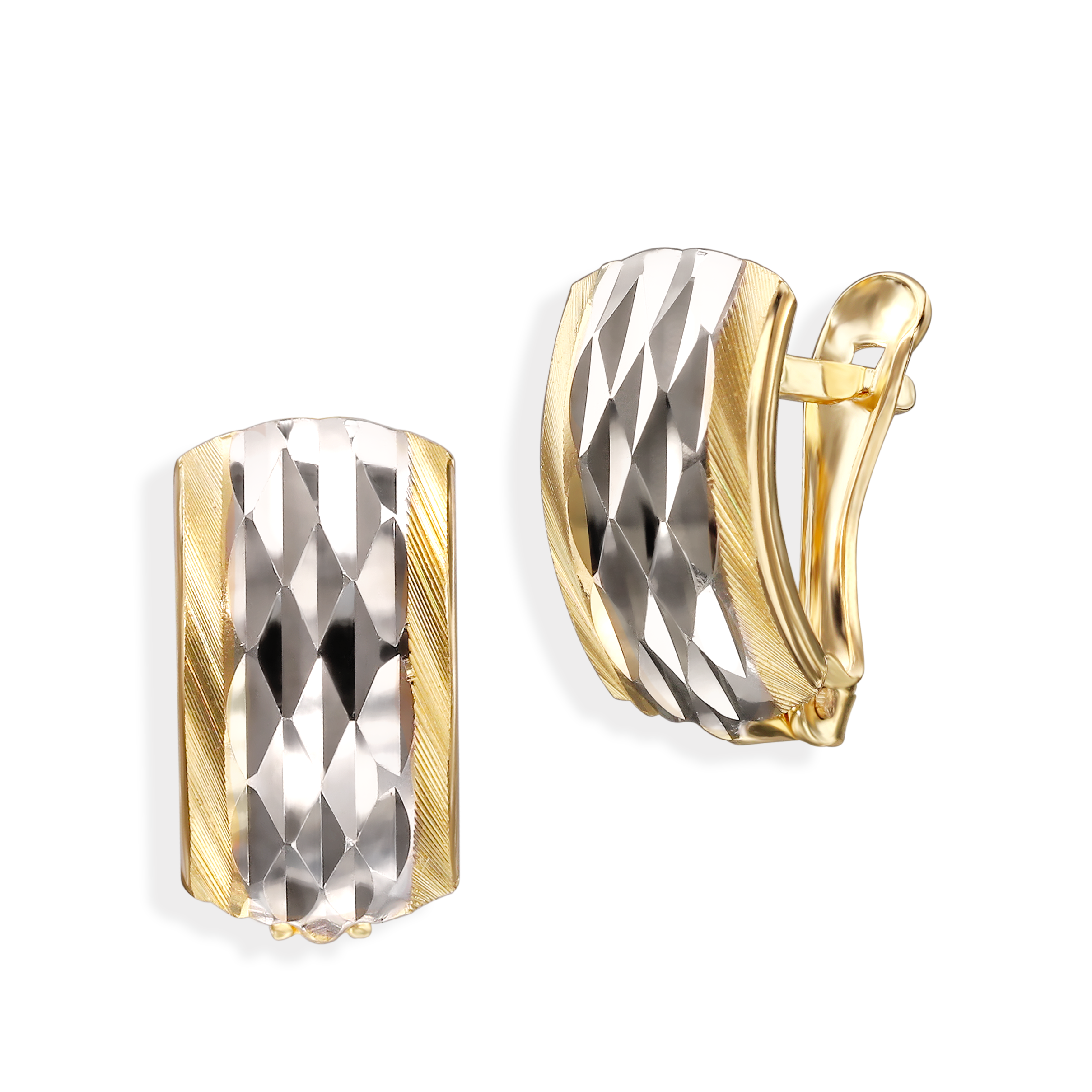 Złote kolczyki na angielskim zapięciu z ozdobnym diamentowaniem to elegancja w detalach. Subtelny wzór dodaje im klasy, a wygodne zapięcie zapewnia komfort noszenia. Idealne dla kobiet, które cenią szyk z nutą wyrafinowania.