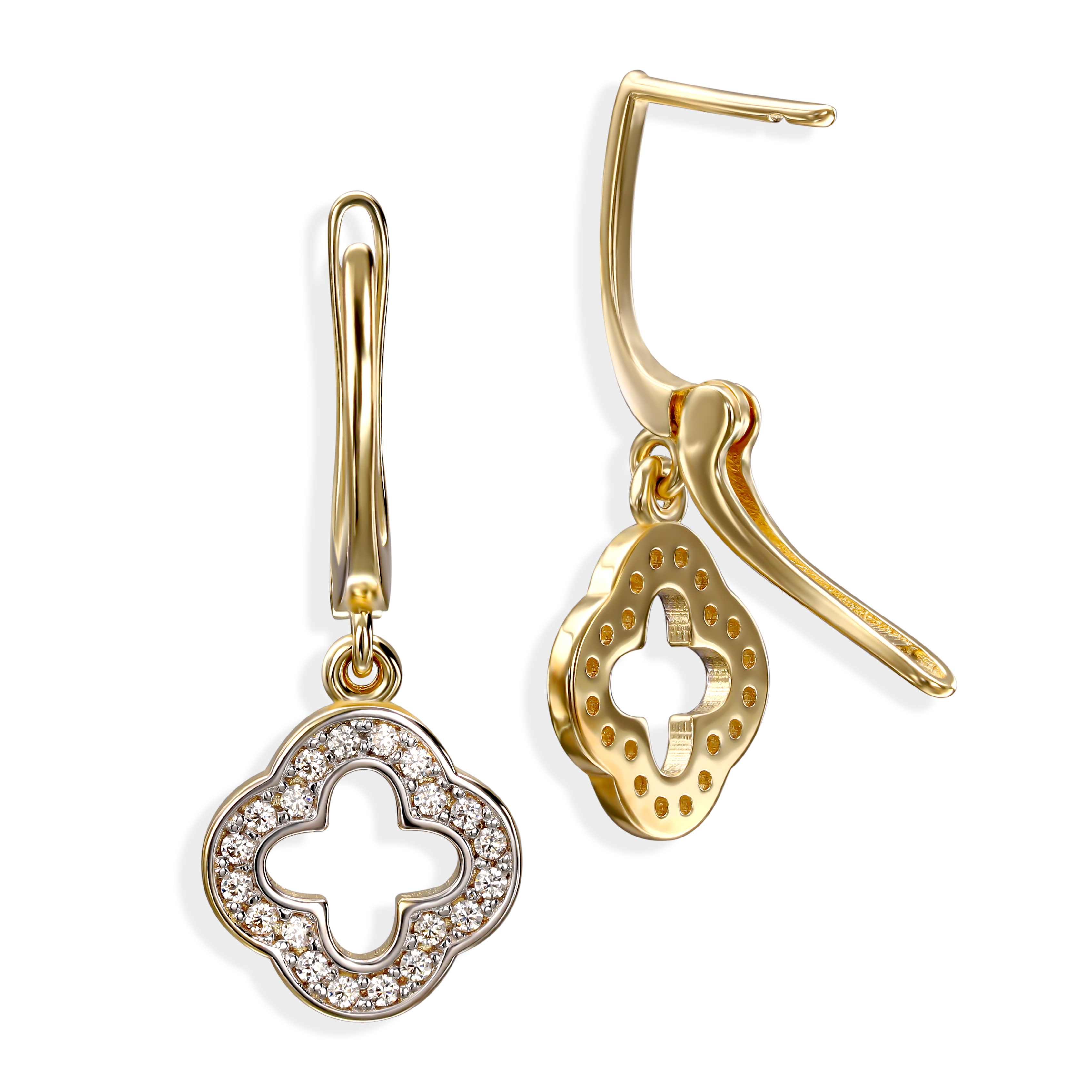 Złote kolczyki w kształcie ażurowych koniczynek to delikatna ozdoba o wyjątkowym uroku. Subtelne wzory i lśniące cyrkonie dodają blasku, a angielskie zapięcie zapewnia wygodę i bezpieczeństwo noszenia. Idealne dla kobiet, które cenią romantyczne detale i biżuterię z duszą. Koniczynka symbolizuje szczęście, więc te kolczyki to nie tylko piękny dodatek, ale też talizman na co dzień. Noś je z uśmiechem — pasują do każdej stylizacji.
