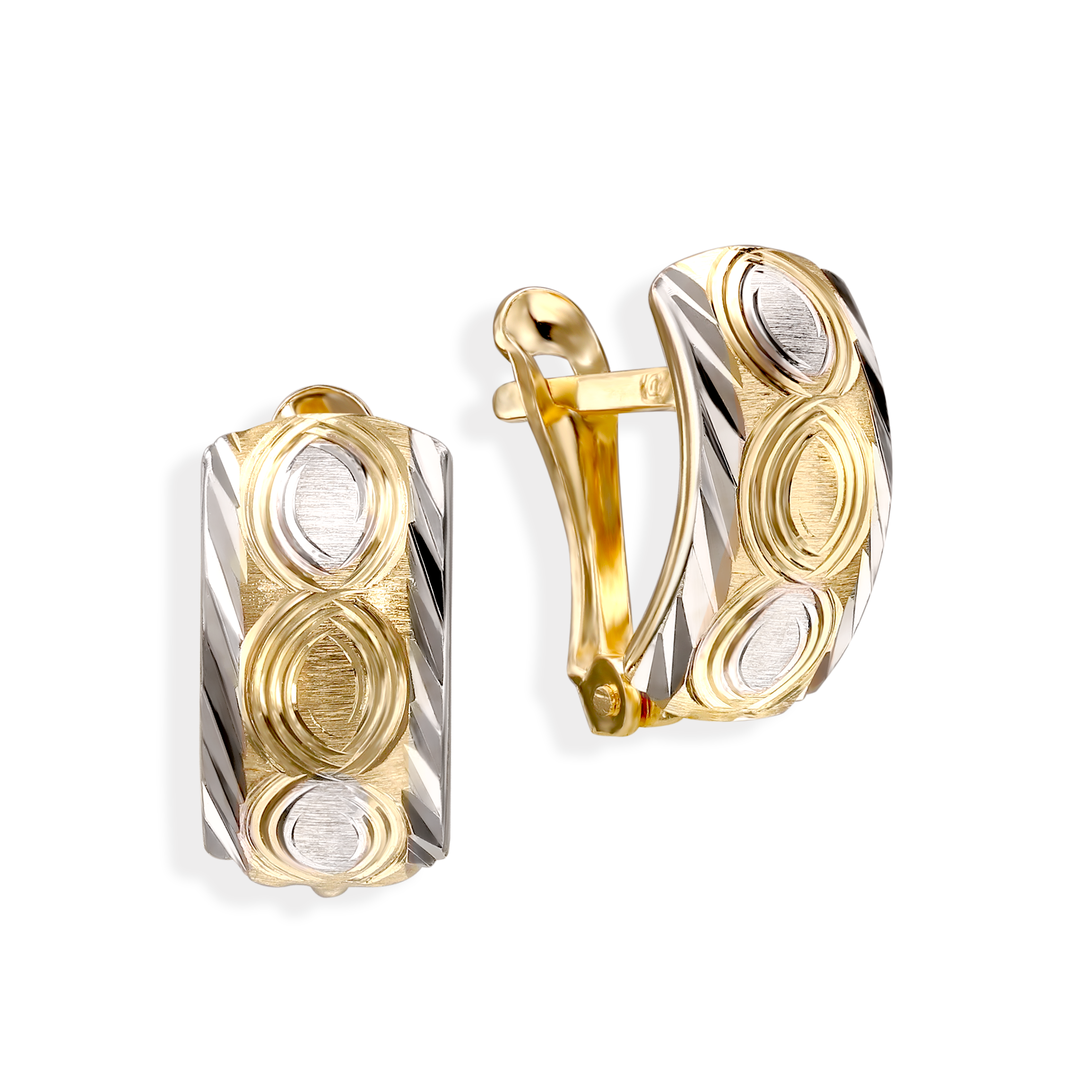 Złote kolczyki na angielskim zapięciu z ozdobnym grawerem to elegancja w detalach. Subtelny wzór dodaje im klasy, a wygodne zapięcie zapewnia komfort noszenia. Idealne dla kobiet, które cenią szyk z nutą wyrafinowania.