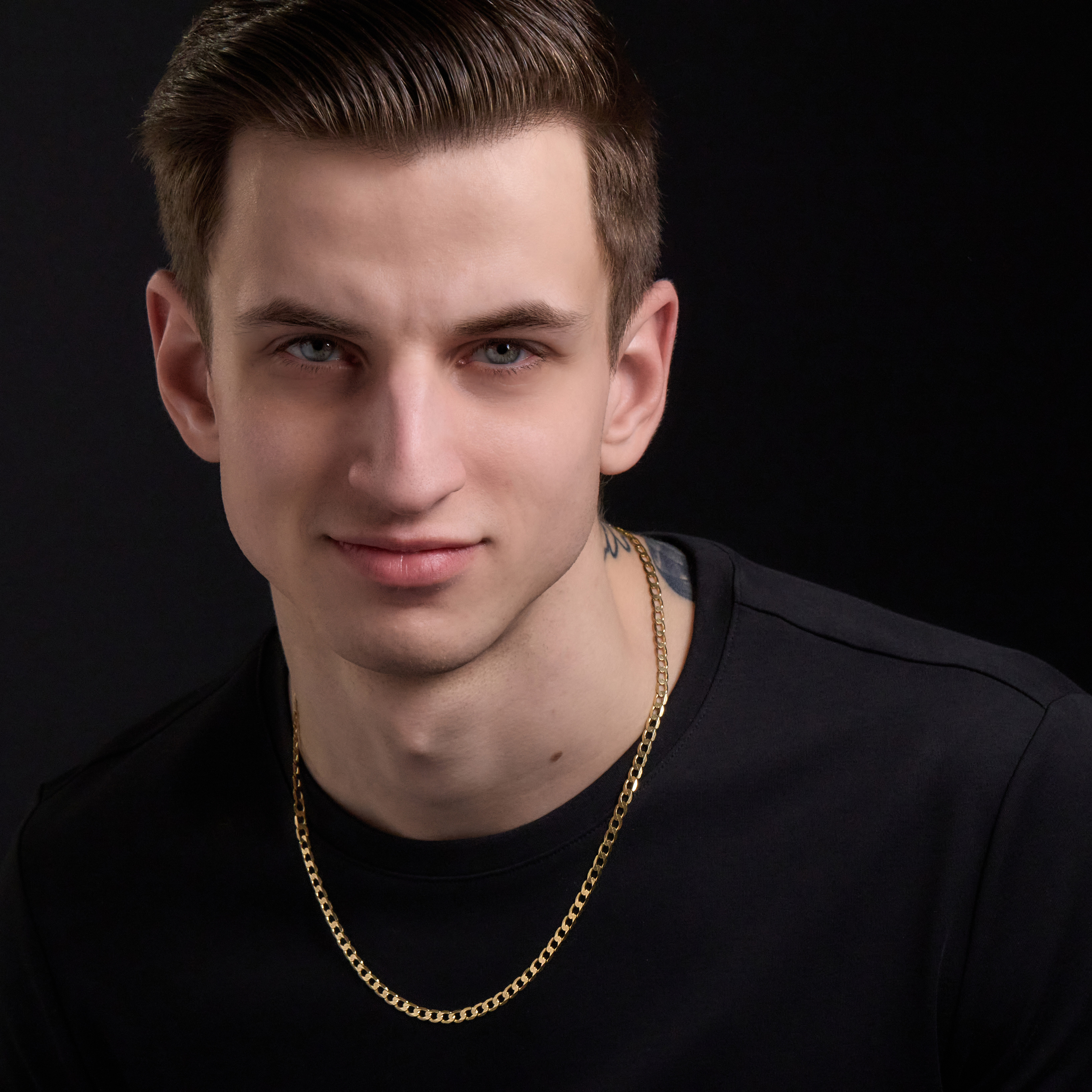 Łańcuszek złoty o splocie pancerka pełna o szerokość 4 mm, długość 50 cm, próba 585. Model ze zdjęcia ma 183 cm wzrostu, nosi rozmiar M/L, rozmiar kołnierzyka 43 cm. Biżuterię pakujemy w piękne ozdobne pudełko, do zamówienia dołączamy firmową torebkę. 307Z4.50