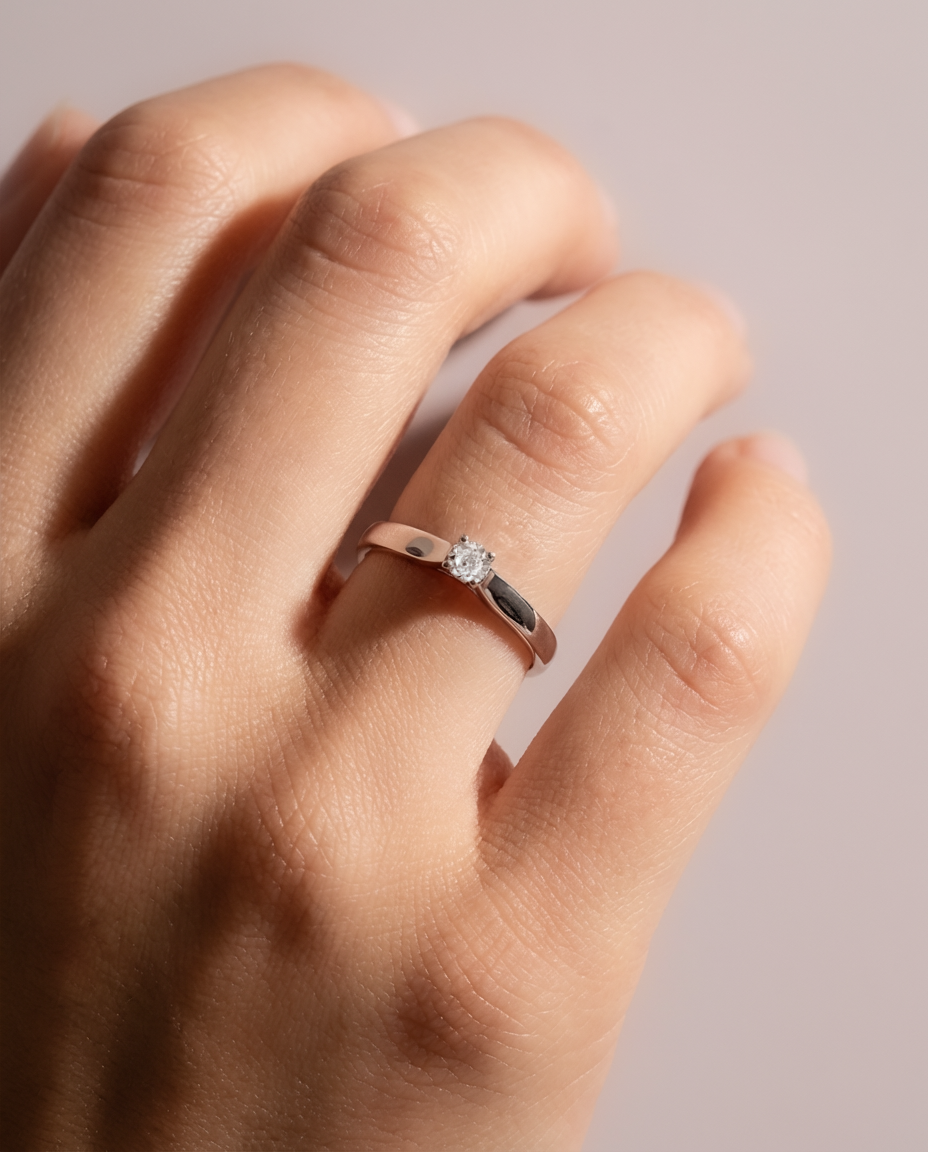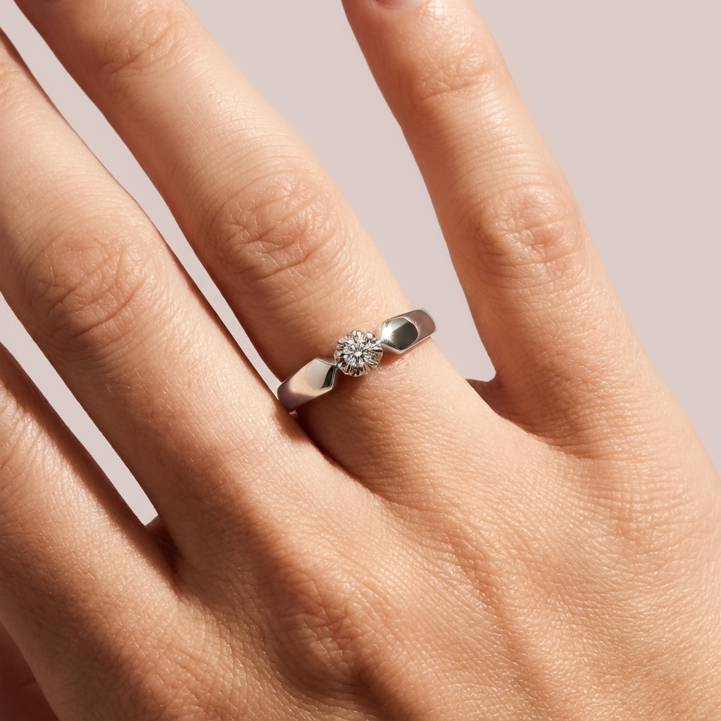 Diamenty w pierścionkach wyróżniają się precyzyjnie dobranymi parametrami, takimi jak barwa, czystość, szlif oraz masa w karatach.