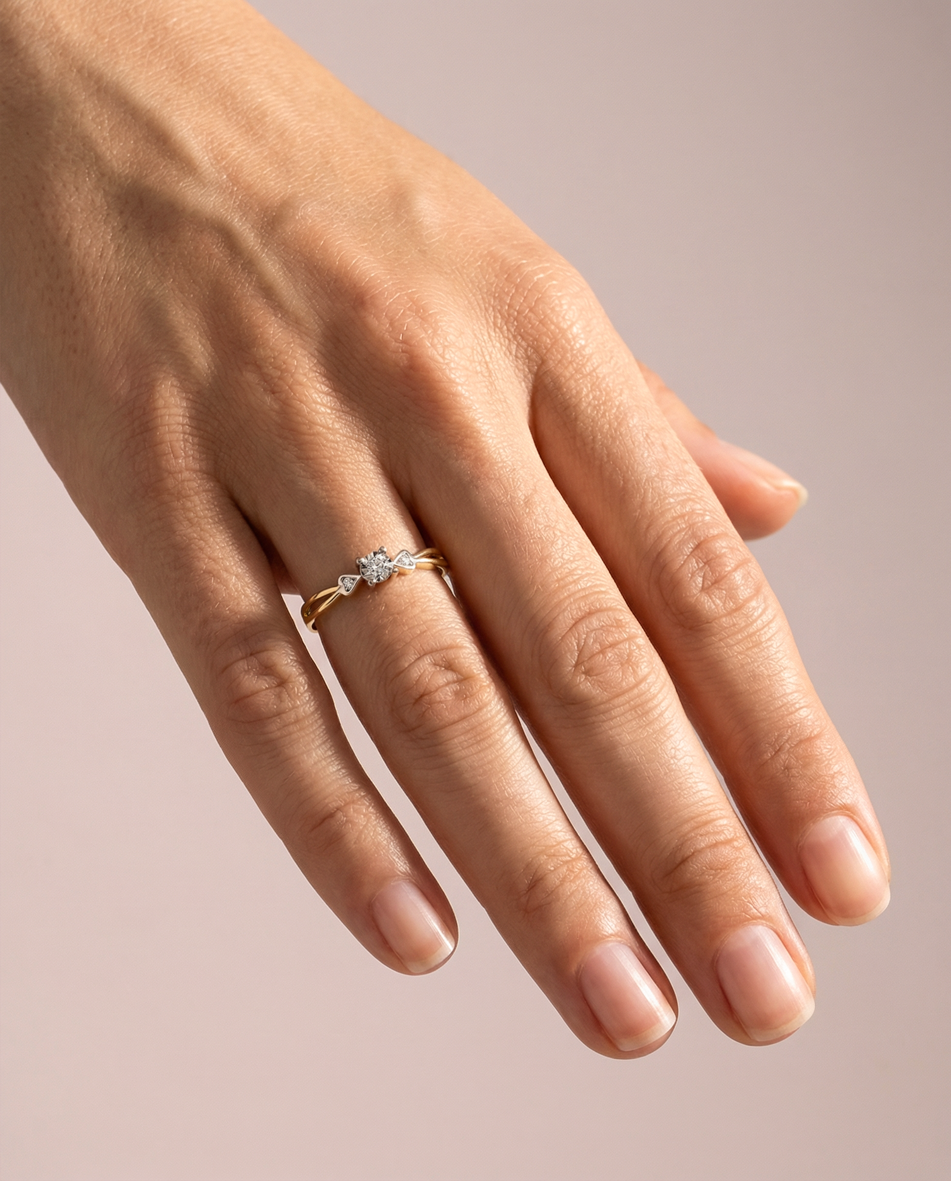 Nietypowe pierścionki zaręczynowe są dostępne w trzech odcieniach złota: białym, różowym i żółtym, wszystkie wykonane są z wysokiej jakości złota próby 585.
