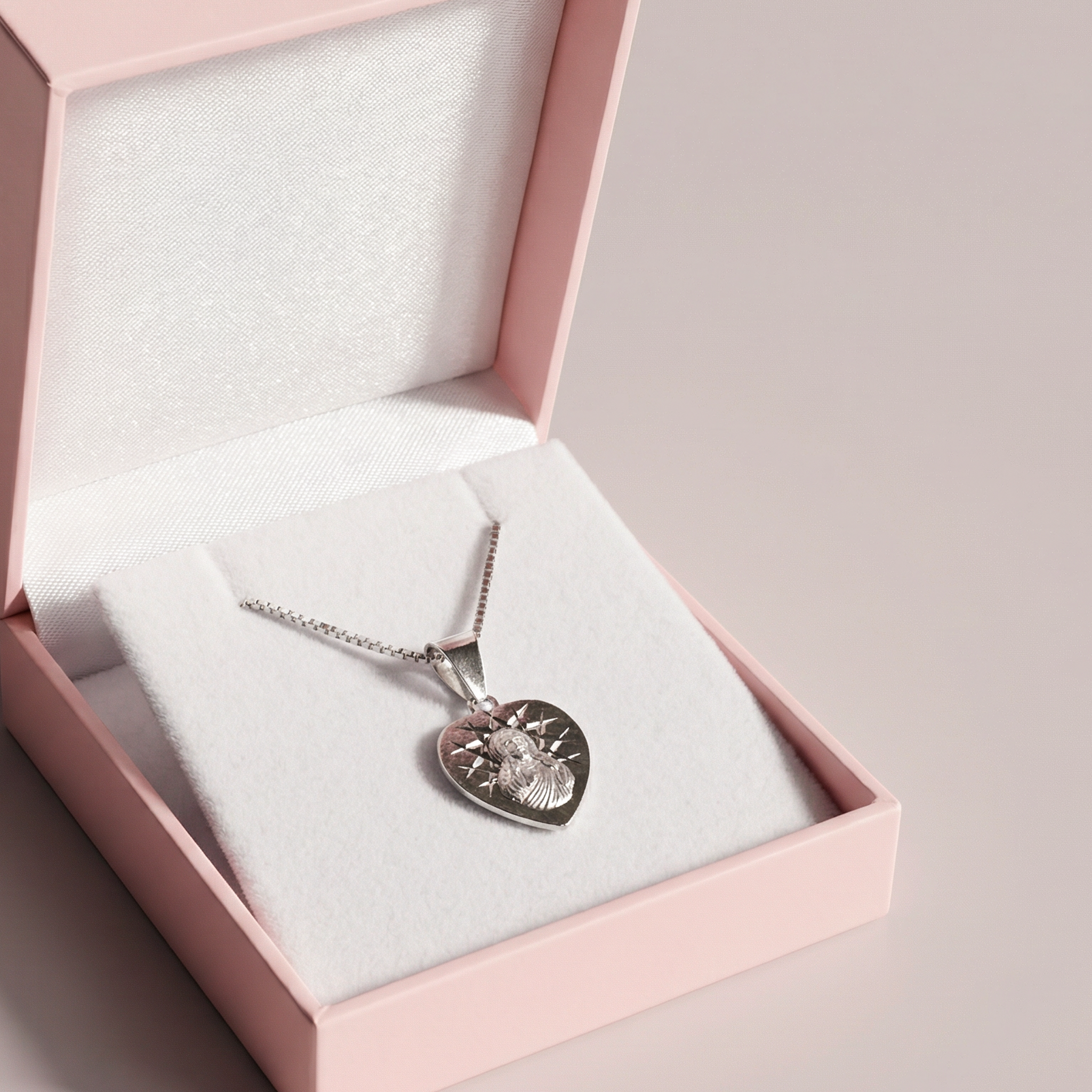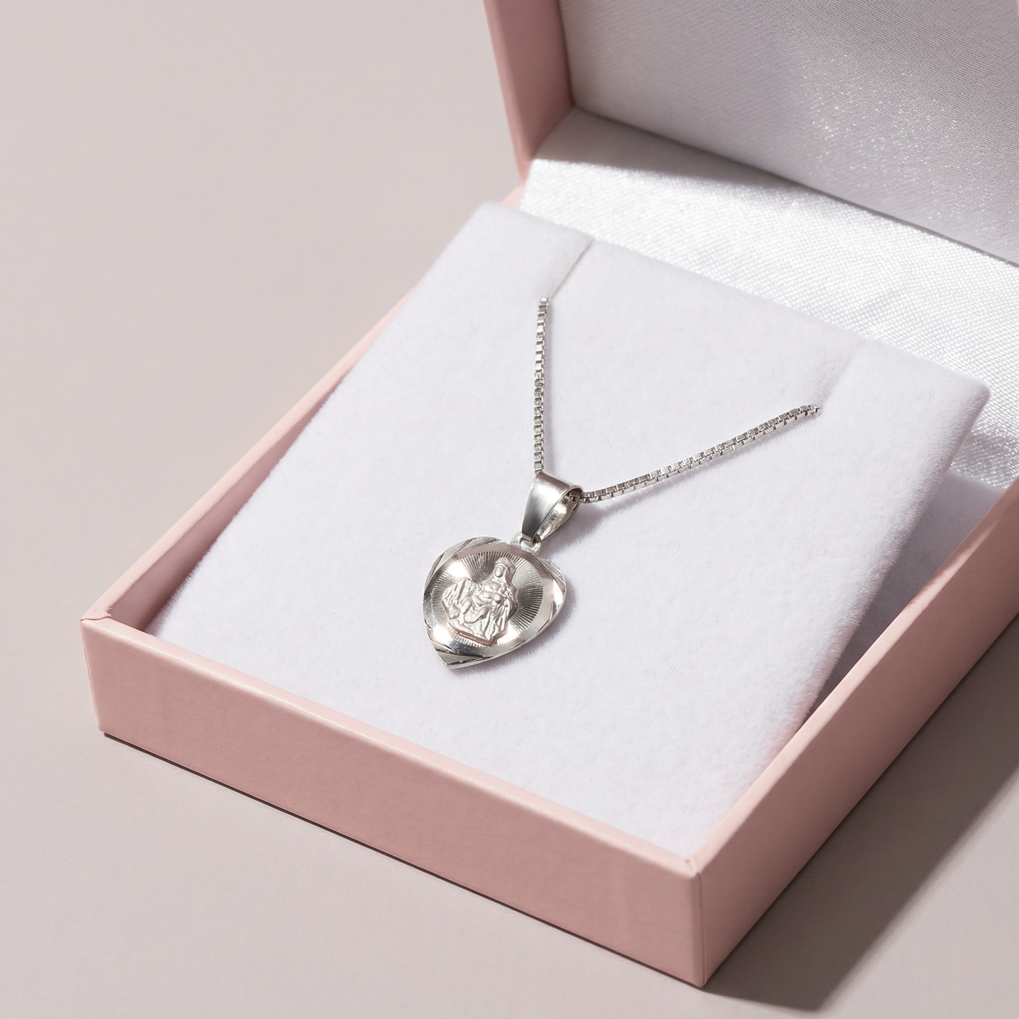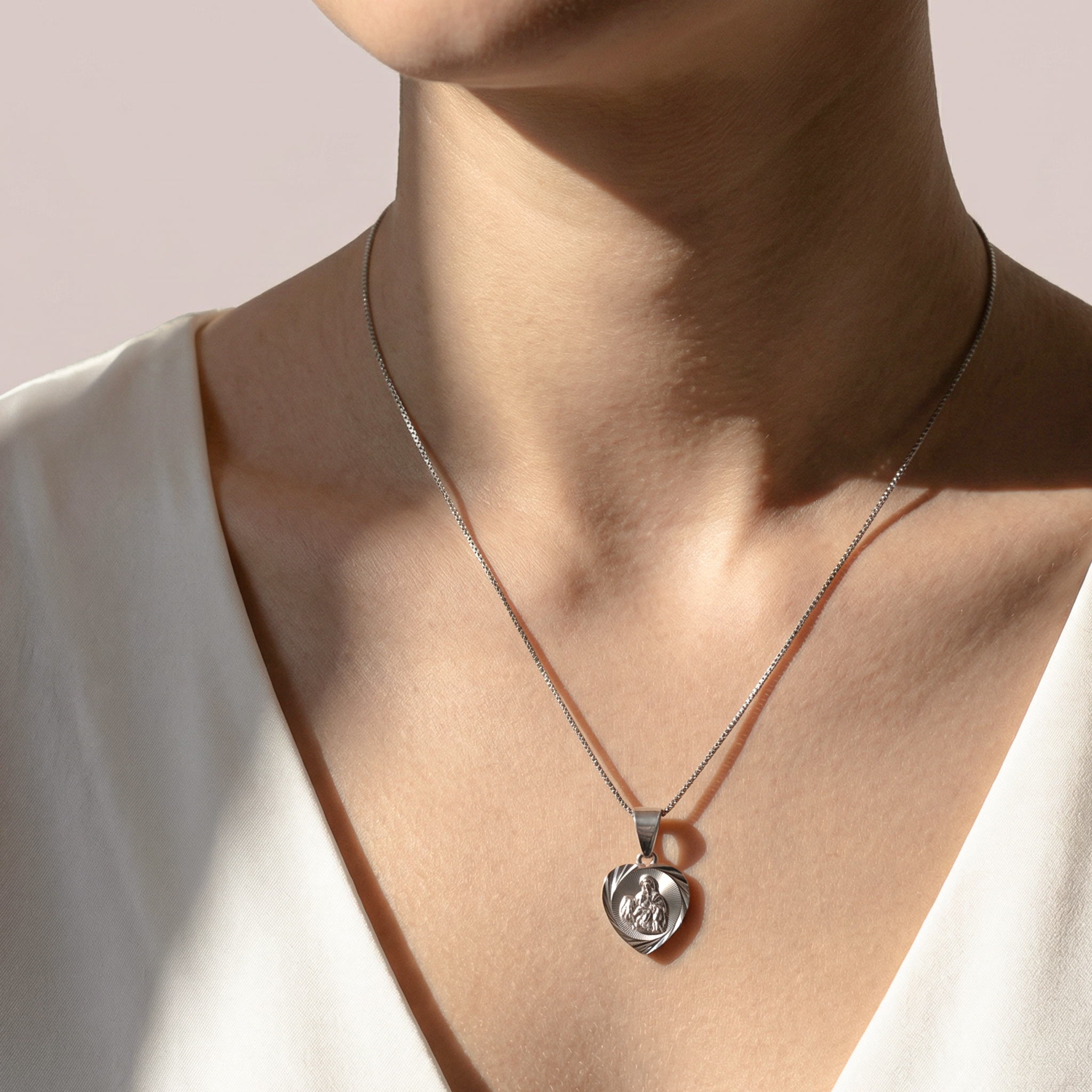Srebrny medalik Szkaplerz diamentowany w kształcie serca, próba 925. Biżuterię pakujemy w ozdobne pudełko, do zamówienia dołączamy firmową torebkę. 378SR