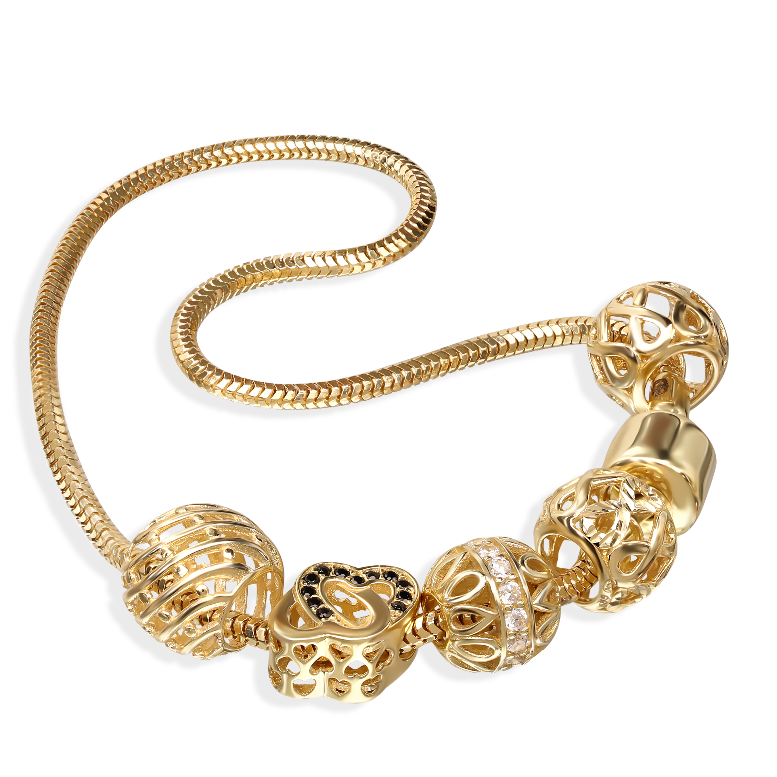 Zawieszka charms złoty owalny z ażurowym wzorem z białymi cyrkoniami, próba 585 2928Z