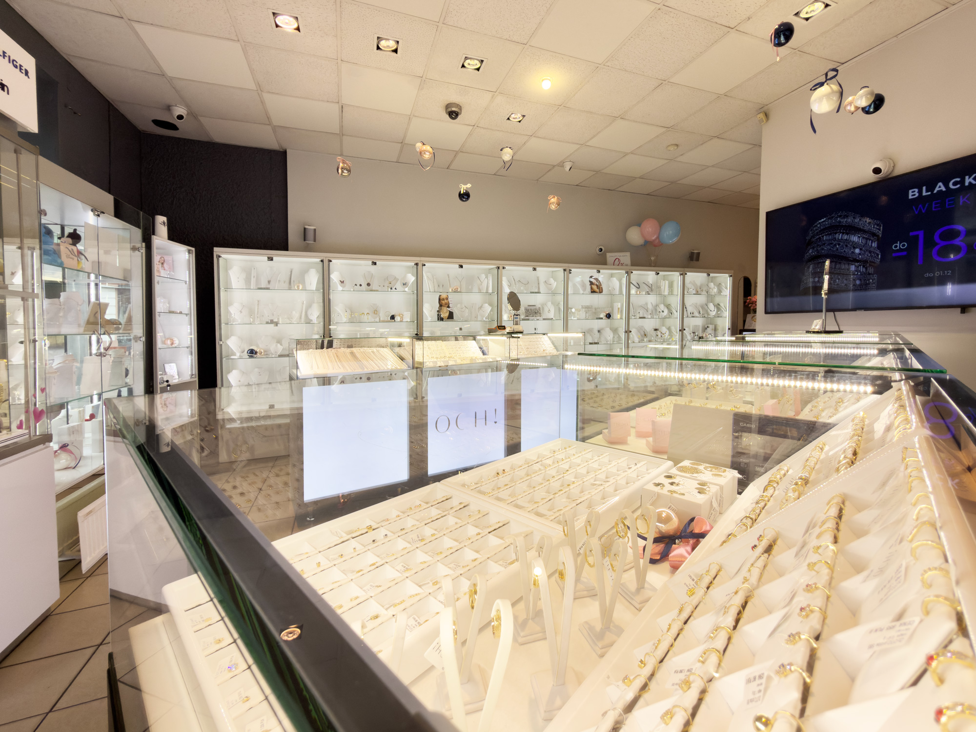 Salon jubilerski OCH w Zduńskiej Woli to 55 metrów kwadratowych, dedykowanych wyjątkowej biżuterii zarówno damskiej, męskiej, jak i dziecięcej. To właśnie tu każdego dnia dbamy, by klienci, którzy odwiedzają nasz salon, mogli cieszyć się z wyjątkowych zakupów w niezwykle przyjaznej atmosferze. Nasz zduńskowolski salon mieści się w zabytkowej kamienicy, przy głównej ulicy handlowej w centrum miasta. Znajdujemy się w sąsiedztwie tak prestiżowych instytucji jak miejski ratusz oraz Państwowa Szkoła Muzyczna I i II stopnia.