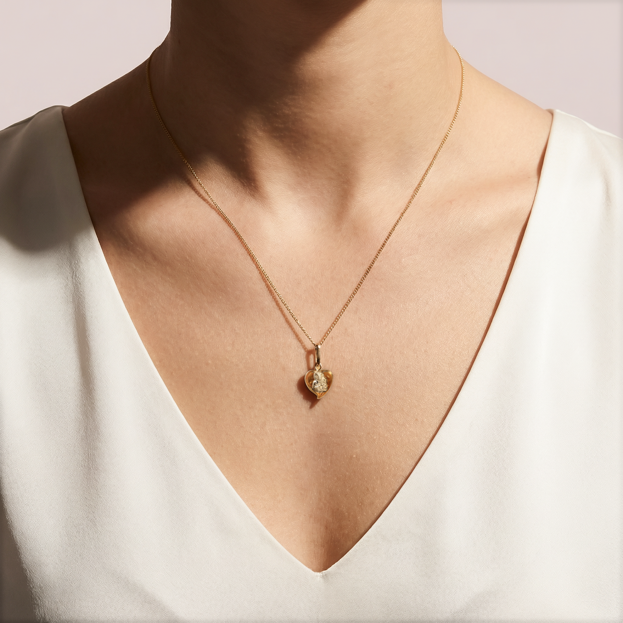 Przestrzenna forma zawieszki z centralnie umieszczonym wizerunkiem Matki Boskiej Częstochowskiej. Druga strona to zupełnie gładkie, proste serce. Można nosić zawieszkę na obydwie strony, dzięki czemu z jednej zawieszki mamy dwie stylizacje.